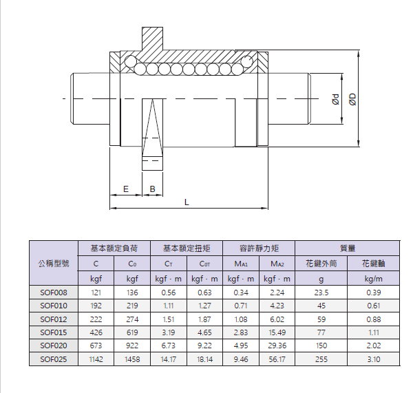 SOF 采用特殊接触点之设计,钢珠有更大的接触角度除了具有灵敏性、高负载力外其定位精度高,且SOF系列是利用法兰通过螺栓将外筒固定在支撑座上,安装简易。采用特殊接触点之设计,钢珠有更大的接触角度除了具有灵敏性、高负载力外其定位精度高,且SOF系列是利用法兰通过螺栓将外筒固定在支撑座上,安装简易。 采用特殊接触点之设计,钢珠有更大的接触角度除了具有灵敏性、高负载力外其定位精度高,且SOF系列是利用法兰通过螺栓将外筒固定在支撑座上,安装简易。