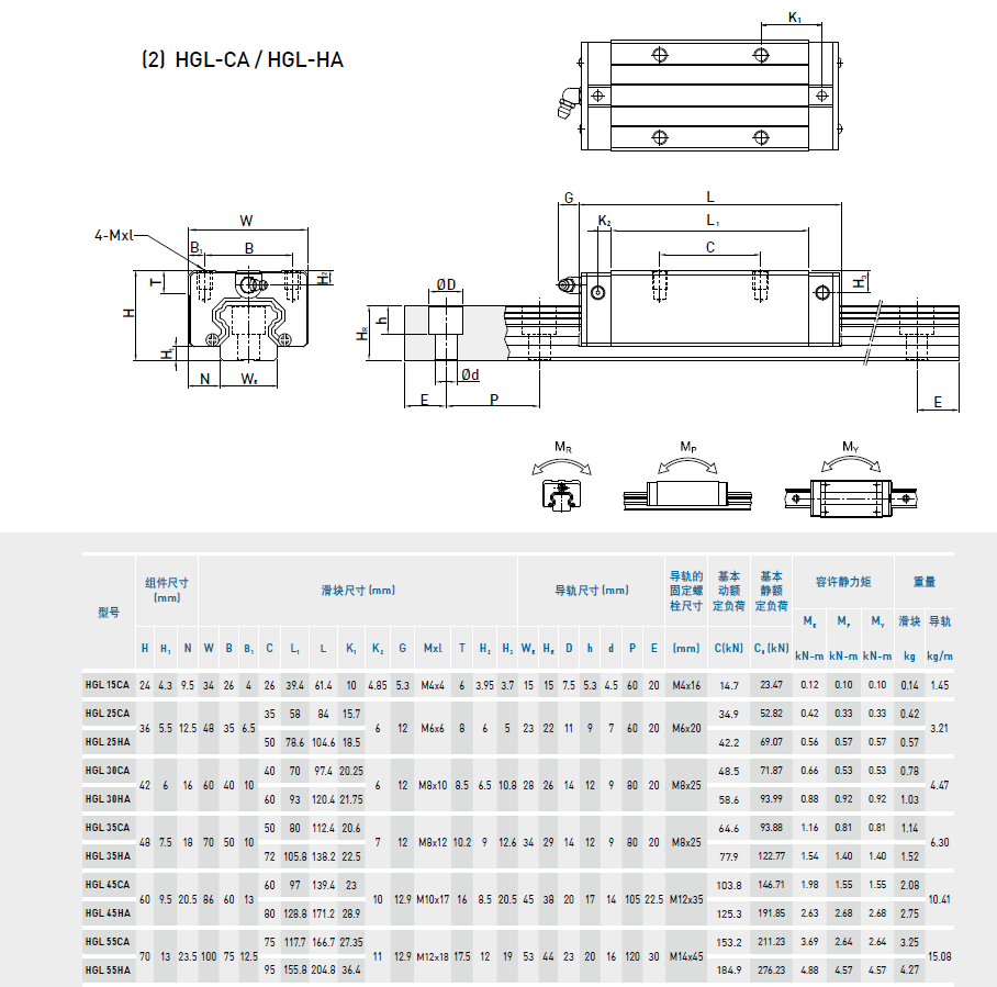 HG系列線性滑軌,為四列式單圓弧牙型接觸線性滑軌,同時整合最佳化結構設計之重負荷精密線性滑軌,相較於其他之線性滑軌提昇了負荷與剛性能力;具備四方向等負載特色、及自動調心的功能,可吸收安裝面的裝配誤差,得到高精度的訴求。高速度、高負荷、高剛性與高精度化概念已成為未來全世界工業產品發展的趨勢,HG系列線性滑軌,即為基於此理念開發之產品。